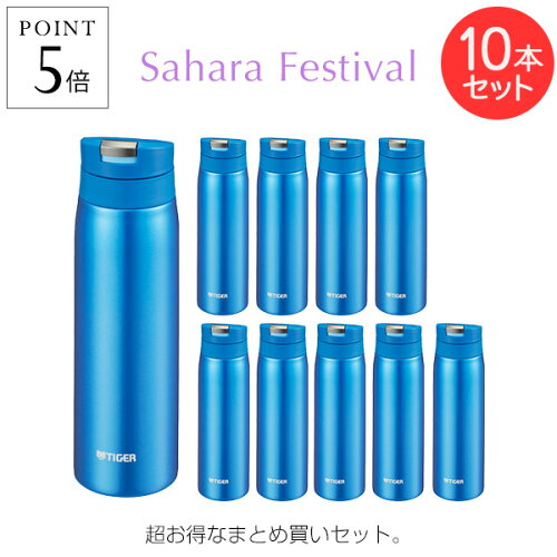 【まとめ買い・10本セット】タイガー 水筒 ステンレスボトル 500ml MCX-A501AK スカイブルー ワンプッシュ サハラ マグ SAHARA 軽量 清潔 保温 保冷 直飲み おしゃれ ボトルセット