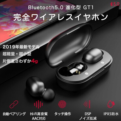 QCY ワイヤレスイヤホン bluetooth5.0 完全ワイヤレス ブルートゥース イヤホン bluetooth イヤホン 両耳 片耳 高音質 カナル型 タッチ型 ワイヤレス ヘッドホン イヤホン 自動ペアリング スポーツ 防水 マイク付き 長時間 通話 スマホ iPhone Android 対応 GT1