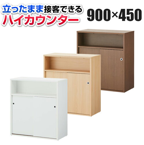 【法人様限定】木製 ハイカウンター 受付カウンター 手荷物棚付き 収納棚付き(扉付き) 幅900×奥行450×高さ1000mm セルボ 【ホワイト・ナチュラル・ダークブラウン】 オフィスカウンター 受付 カウンター オフィス 店舗